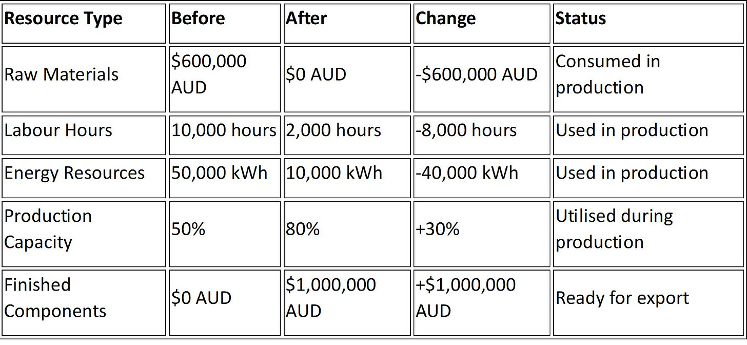 When the Australian Mining Equipment Manufacturer (AMEM) produces goods for export, real resources are consumed: