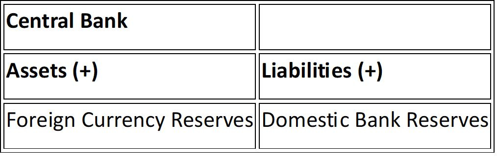 The private sector surrenders one financial asset (foreign currency) and receives another (domestic currency)
