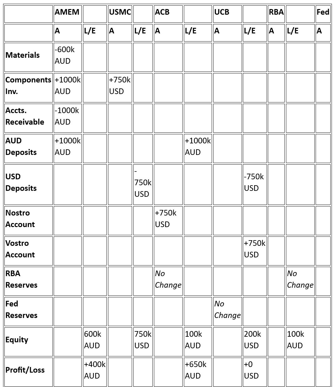 No new net financial assets were created globally - The total quantity of AUD and USD remained unchanged
