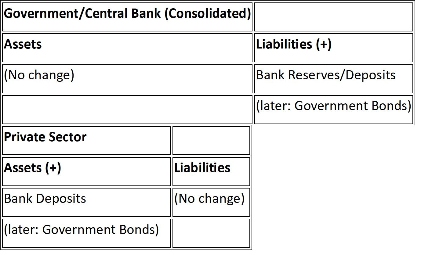Government spending creates bank reserves and bank deposits without requiring the private sector to surrender any financial asset