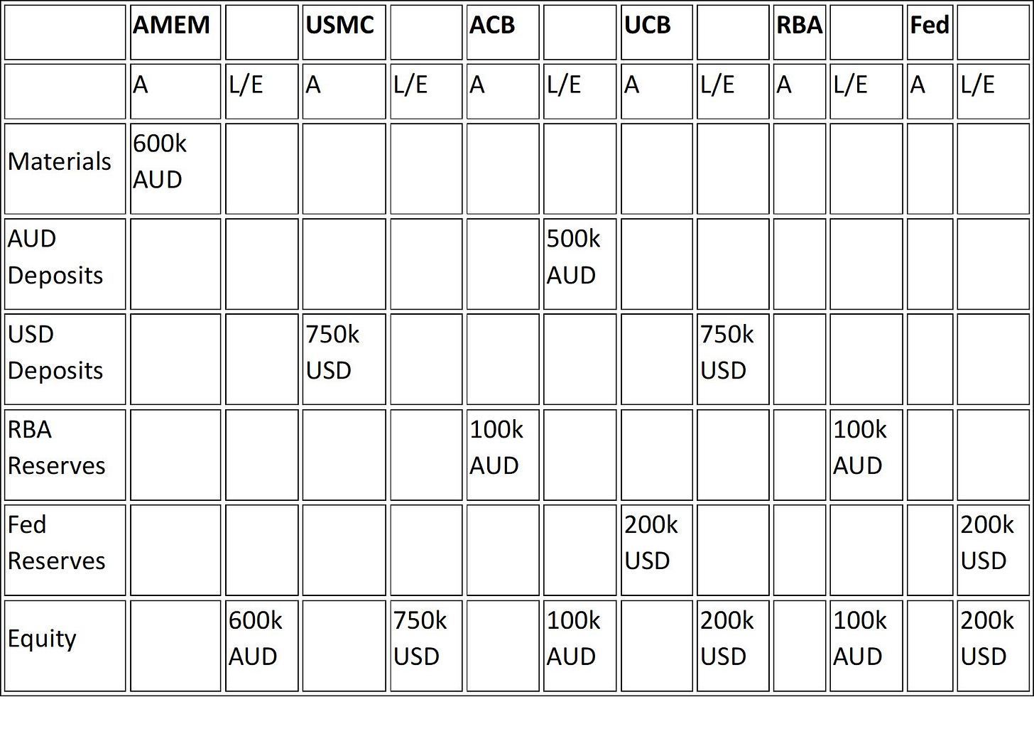 Existing currencies were redistributed between entities - AMEM gained AUD deposits, USMC lost USD deposits